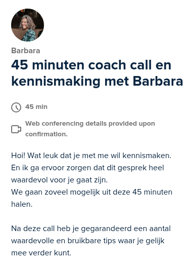 Bedankt voor je bericht en uitgebreide terugkoppeling! Zoals je al aangaf, heb ik inderdaad gelijk iets gehad aan onze kennismaking. Het was gelijk praktisch, dat vind ik fijn. Bedankt hiervoor!